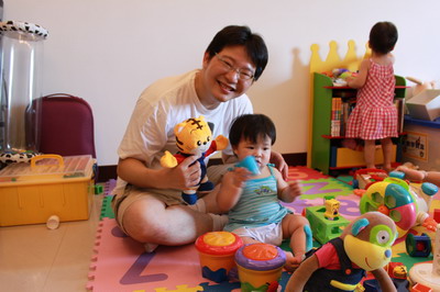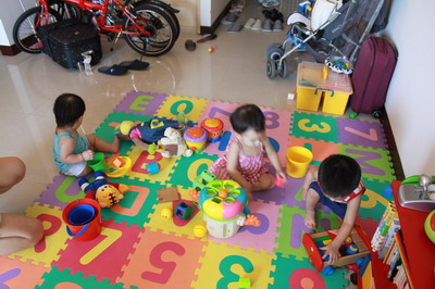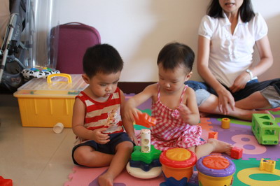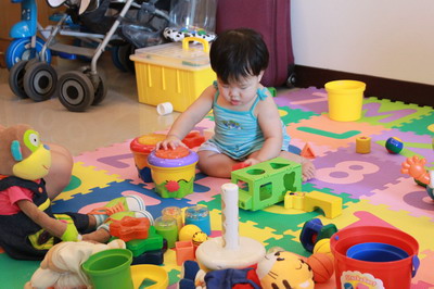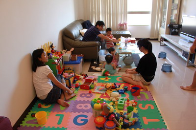 不過,小朋友還太小似乎沒有玩伴的概念,都各玩各的。