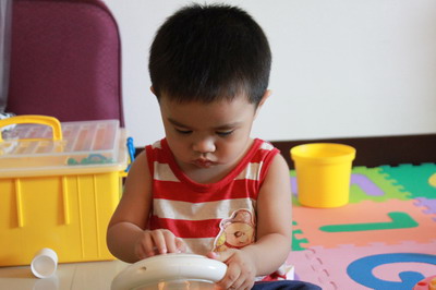 女婿一號,小布;果然有遺傳到工程師爸爸的個性,認真玩玩具!
