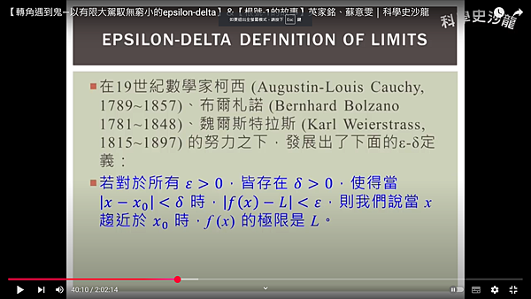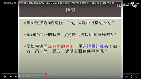 轉角遇到鬼—以有限大駕馭無窮小的epsilon-delta】&【根號-1的故事】英家銘、蘇意雯|科學史沙龍