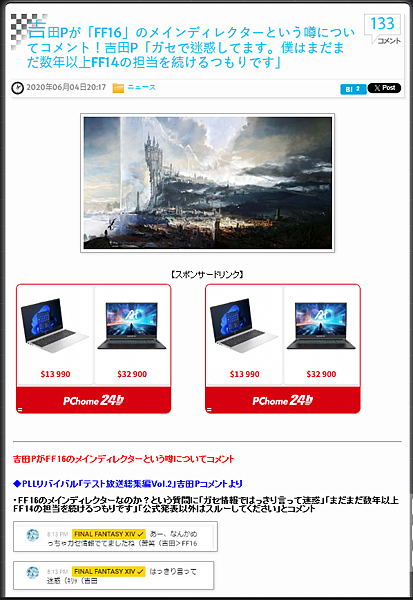 吉田在整個過程中,也是一再的否認要接FF16的製作人。最後一次明確的否認,是2020年6月的直播,相關證據如附件所示。