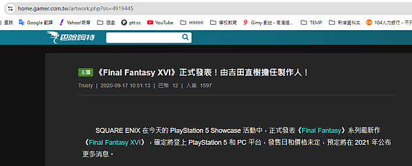 但是FF16原本製作人(不知道是誰XD),一直搞不定下,從玩家開始要求吉田來接手後,SE高層也開始有這種想法,而且愈來愈強烈。